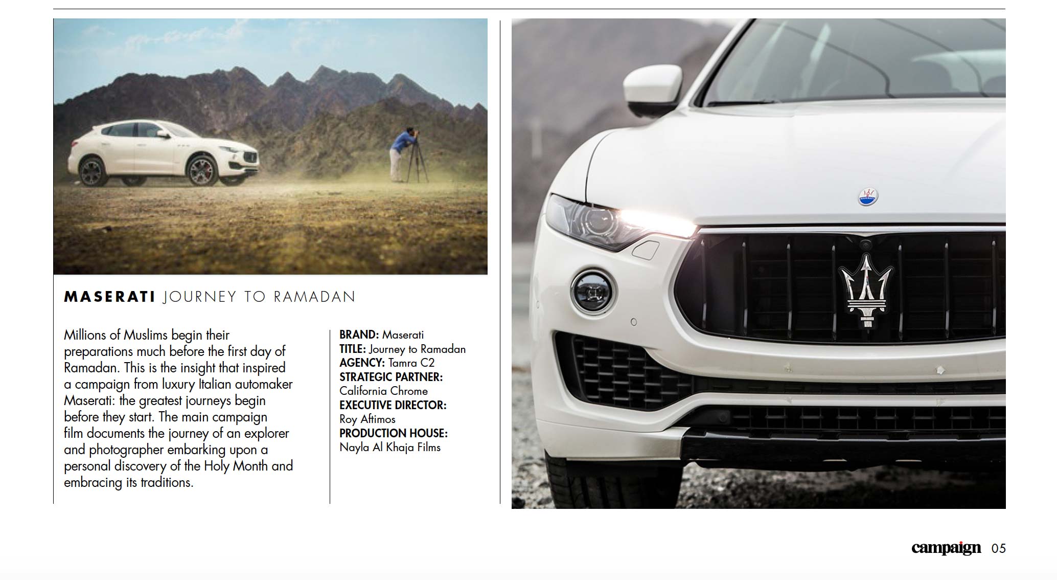 Millions of Muslims begin their preparations much before the first day of Ramadan. This is the insight that inspired a campaign from luxury Italian automaker Maserati: the greatest journeys begin before they start. The main campaign film documents the journey of an explorer and photographer embarking upon a personal discovery of the Holy Month and embracing its traditions.